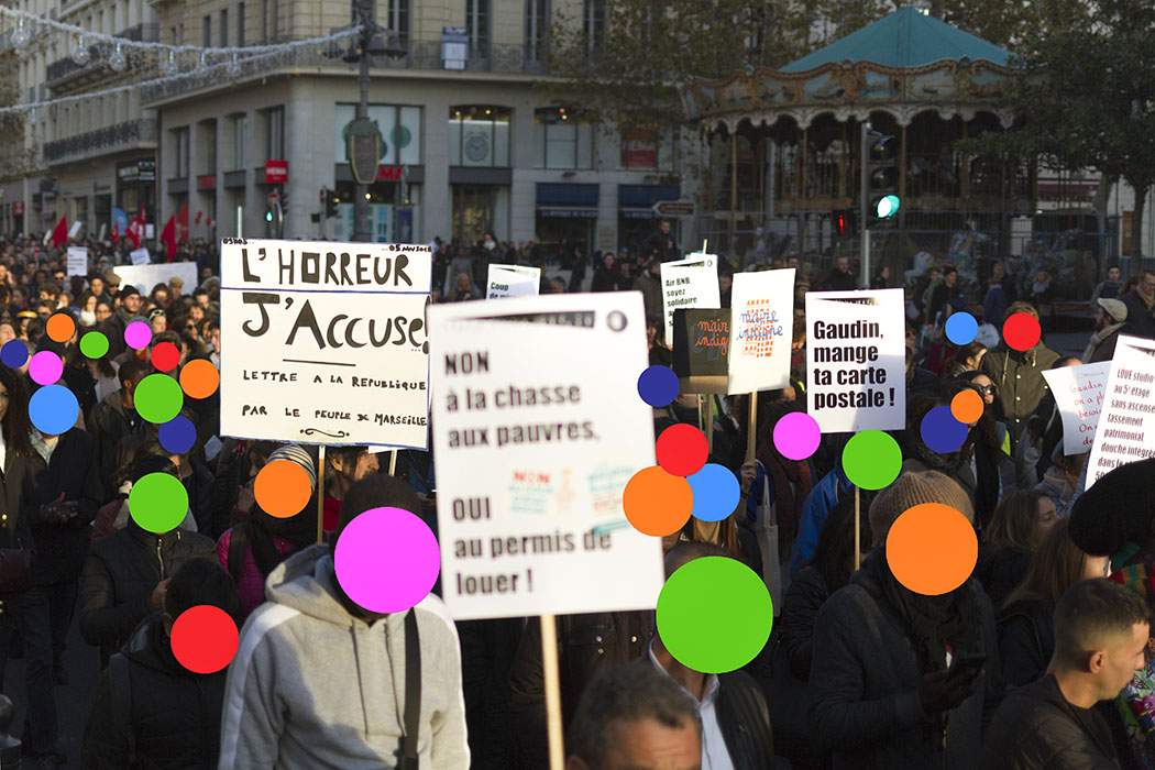 Cet ensemble de photographies a été constitué à la manière d’une accumulation effrénée de gestes militants en faveur de l’esprit festif et solidaire du quartier de la Plaine à Marseille.
