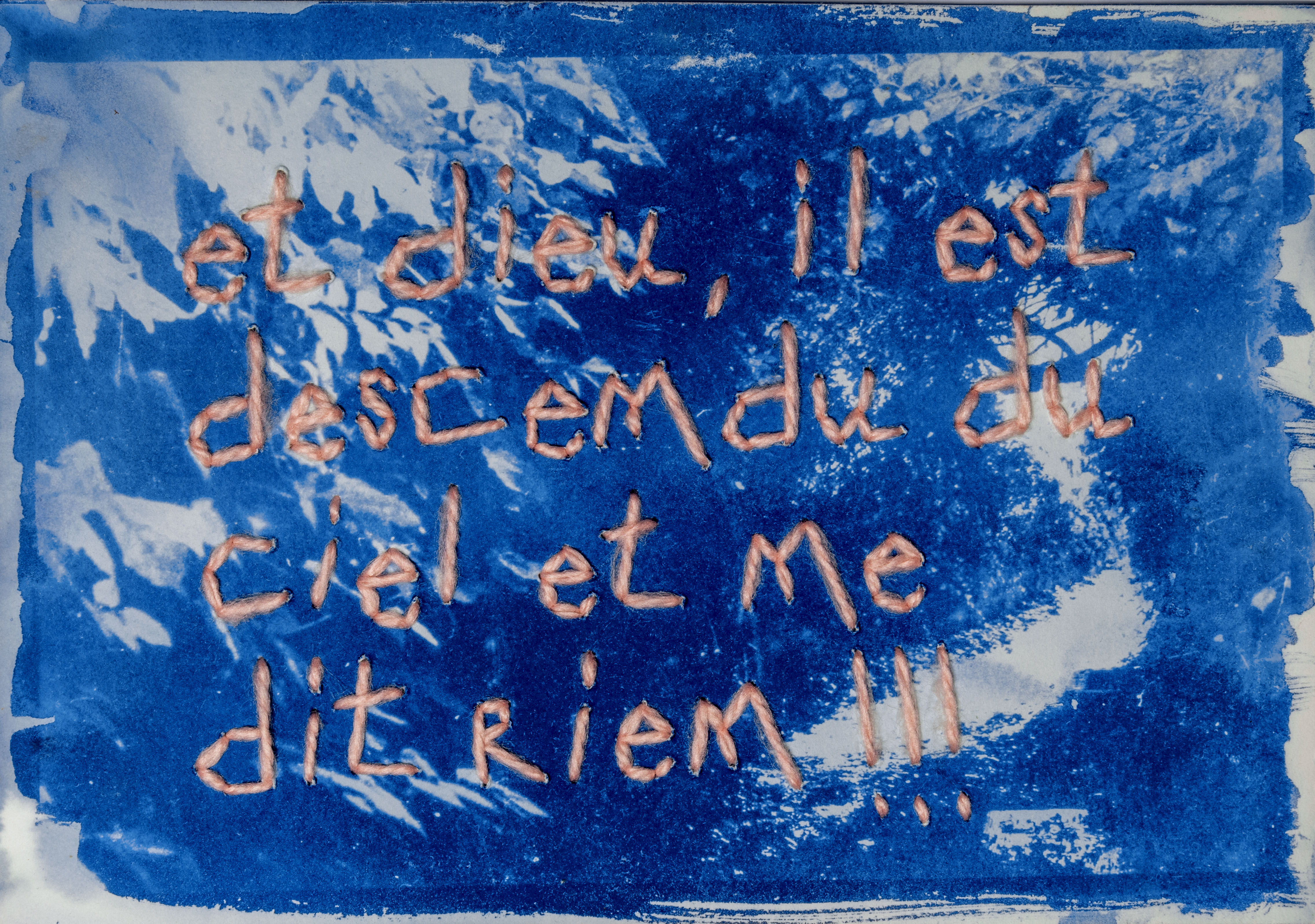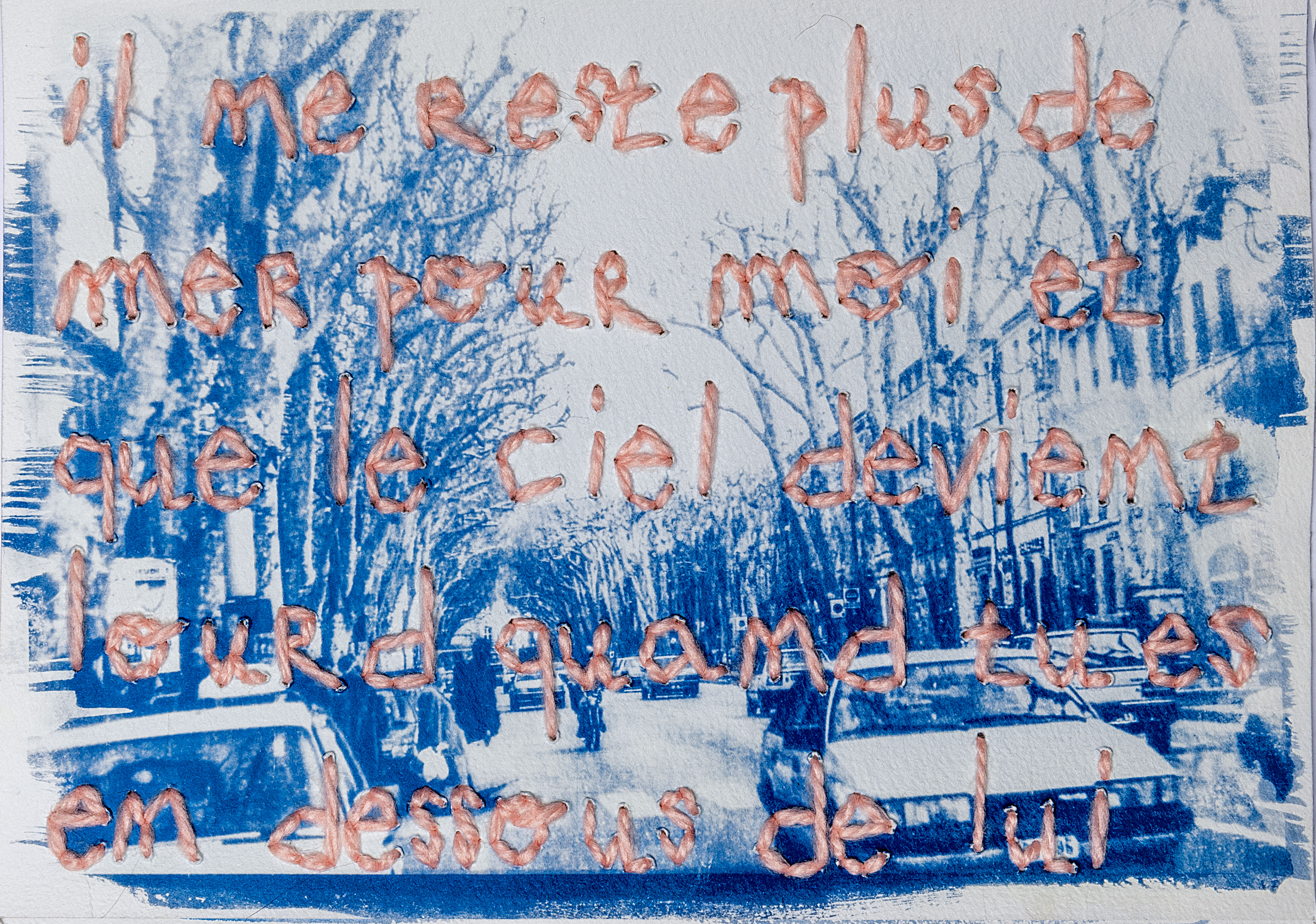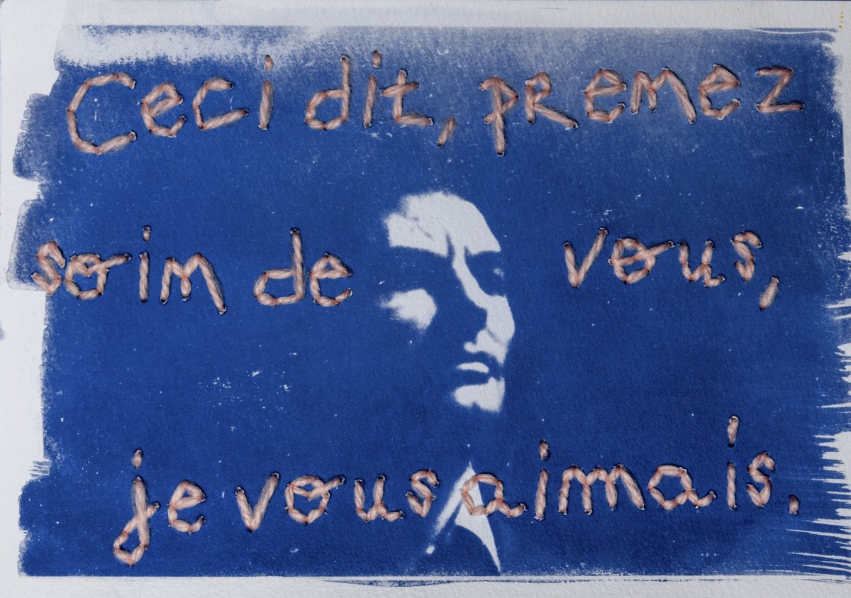 Ceci dit prenez soin de vous, cyanotypes cousus et interventions plastiques sur tirages, 2026.